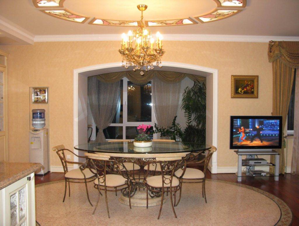 По мнению опытных дизайнеров, круглый стол лучше всего устанавливать в комнату квадратного размера.