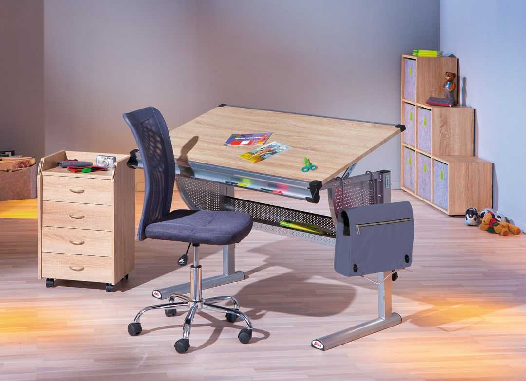 Для удобства занятий необходимо учитывать соотношение высоты стола и стула для ребенка в зависимости от роста, а также наклон столешницы.