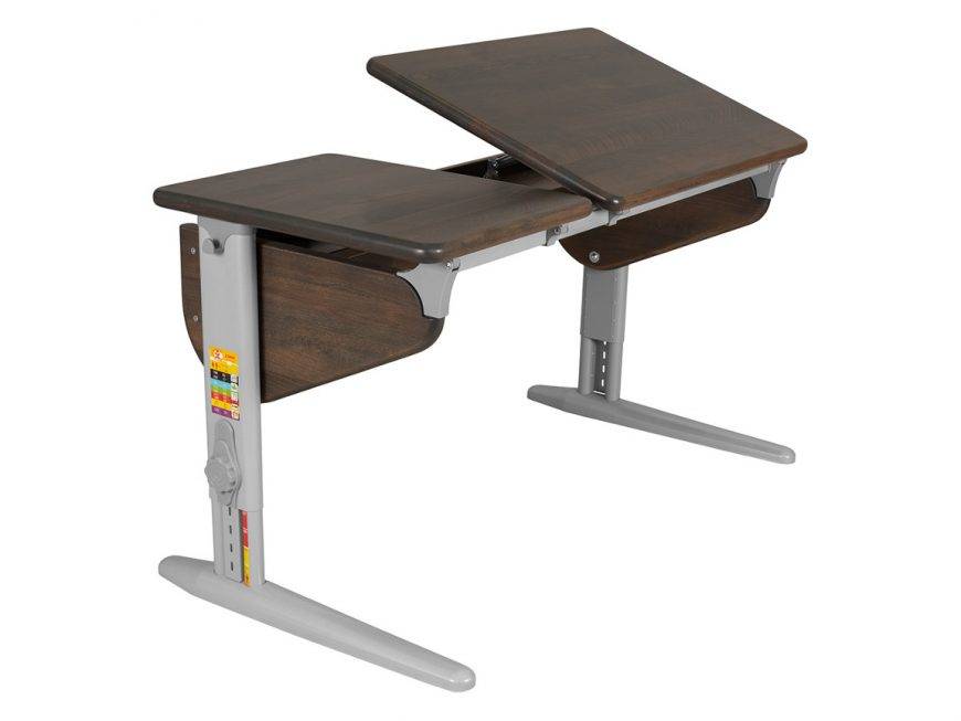 Угол наклона у этой модели настраиваются от 0 до 30. Менять можно и высоту изделия от 53 до 81,5 см. Ножки сделаны из надежного металла, который покрыт эмалью. Они очень хорошо удерживают баланс и существенные нагрузки. Сбоку стола есть небольшой крючок для школьного рюкзака.
