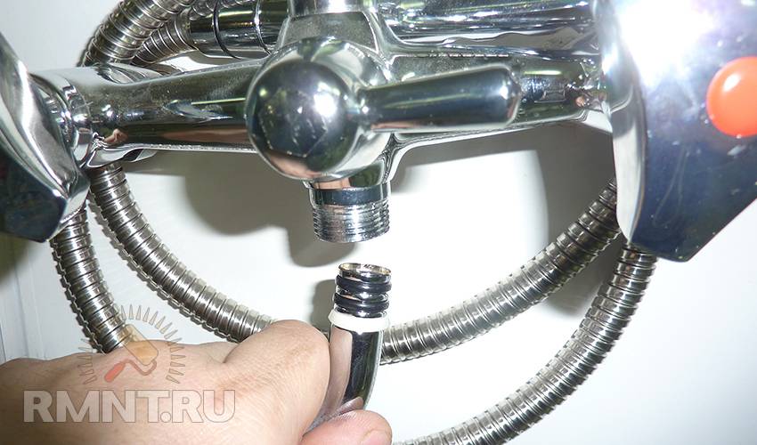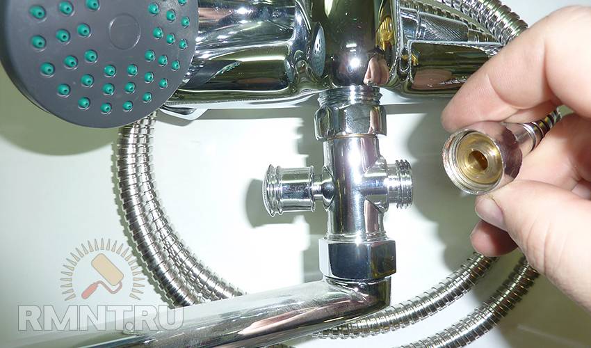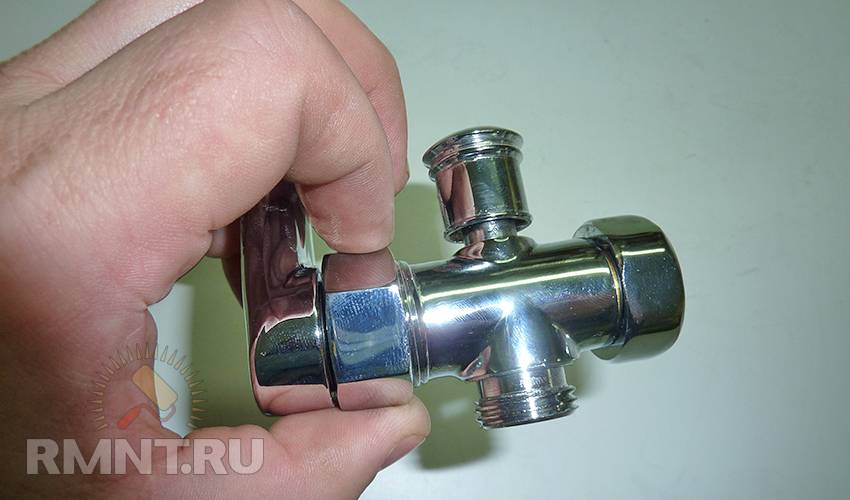 Замену этой конструкции нужно начинать с перекрытия воды вентилями смесителя. Затем необходимо отсоединить кран и шланг душа. После этого можно извлечь механизм, очистить его от загрязнений и заменить негодную деталь. Установка девиатора кнопочного типа также не требует специальных инструментов и доступна неспециалисту.