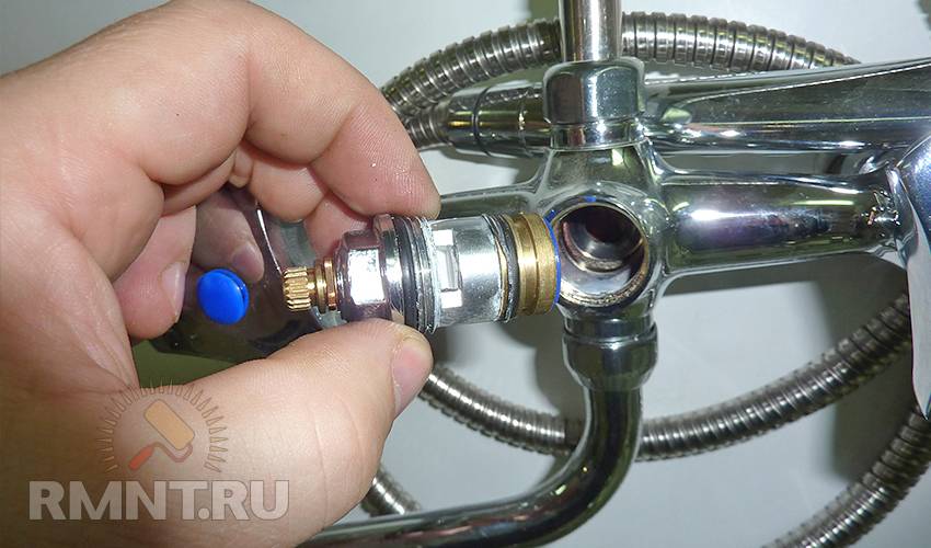 Картриджный переключатель. Этот механизм ломается очень редко. Наиболее распространенной причиной неисправности становится примесь грязи в водопроводной воде. Ремонт заключается в полной замене девиатора. Сделать это несложно, достаточно выкрутить винт, снять рычаг и достать сломанный картридж. После установки нового элемента спокойно соберите смеситель.
