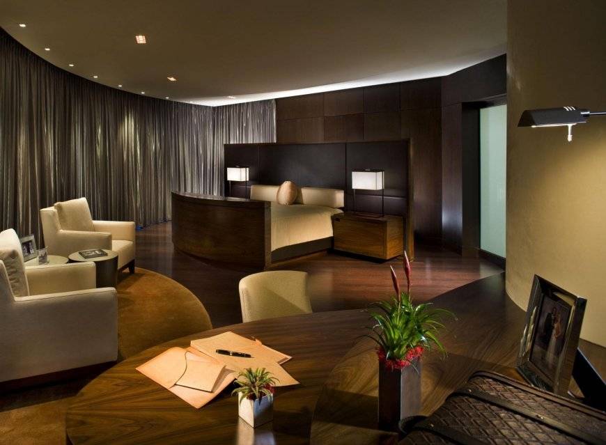 Говоря об интерьере спальни в темных тонах, стоит уделить внимание не только мебели, но и другим элементам интерьера полам, мебель, аксессуарам и текстилю