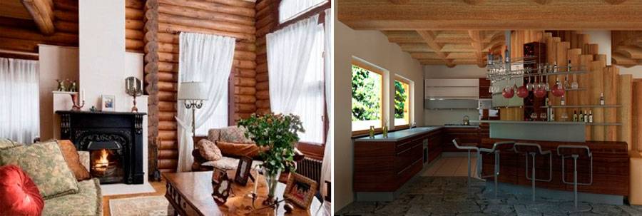 Комнаты загородного дома из бревна или бруса