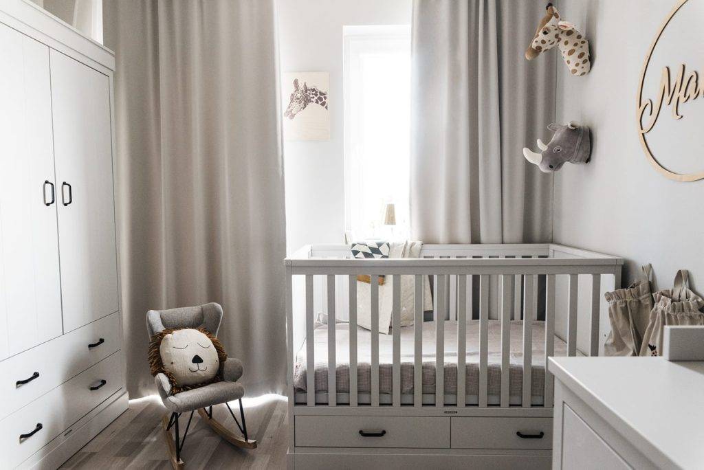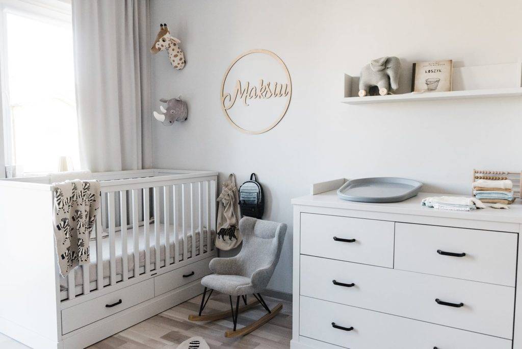 Обязательно выбирай удобную кроватку. Лучше всего – регулируемую и разборную. Так ее не придется менять каждые несколько месяцев. С остальной мебелью ориентируйся на себя: пеленальный столик, шкафы, ящики и сундуки для хранения вещей.