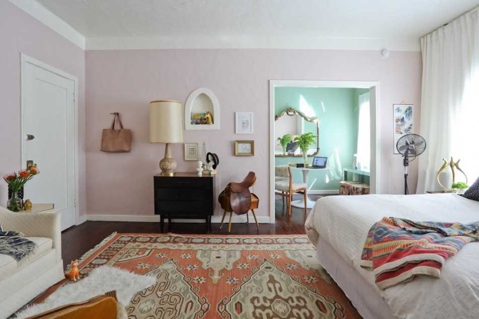 Когда жилище, площадью около 70 кв. м имеет всего две больших комнаты, с помощью цвета производится их зонирование. В гостиной место для семейных обедов будет отделяться от места отдыха другими цветами стен, пола, потолка. В детской разного цвета ковриками украсится пол в игровой, спальной, рабочей зонах. Когда выбираются различные оттенки одного цвета, то в спальнях, южных комнатках они должны быть на пару тонов темнее.