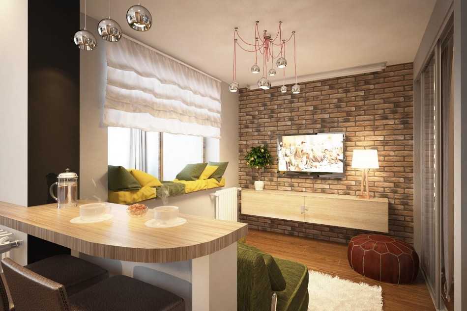 Проекты на 33 кв. м и менее предполагают превращение квартиры в студию. Тем, кто хочет сохранить на такой площади все перегородки и дополнительно зонировать комнату, будет целесообразно обратиться к дизайнеру.