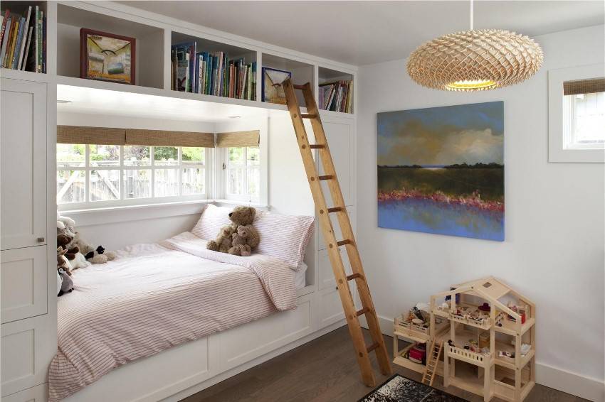Если эркерная ниша располагается в детской комнате, ее пространство можно использовать под игровую зону с полками и корзинами для игрушек. Можно создать имитацию кухонной зоны для девочек или мастерскую для мальчиков. Если в комнате живут школьники, тогда целесообразно будет оборудовать рабочее место, которое достаточно хорошо освещается в дневное время суток.