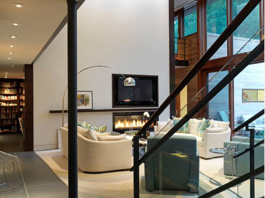 Изогнутые плазменные панели, LED или ЖК телевизоры с любой диагональю, являются практически неотъемлемой частью современного стиля, обладающего очень естественным видом. Здесь будет уместно повесить тв-изделие на стене с ровной или объемной фактурой, встроить модель в элементы мебели или создать выразительный акцент, размещая черный экран на белоснежном фоне.