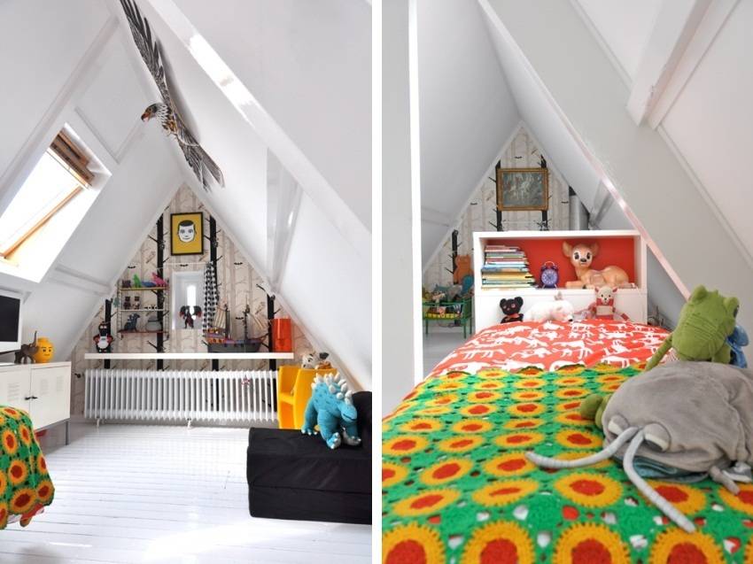 Стильные примеры ярких и креативных детских комнат на чердаке