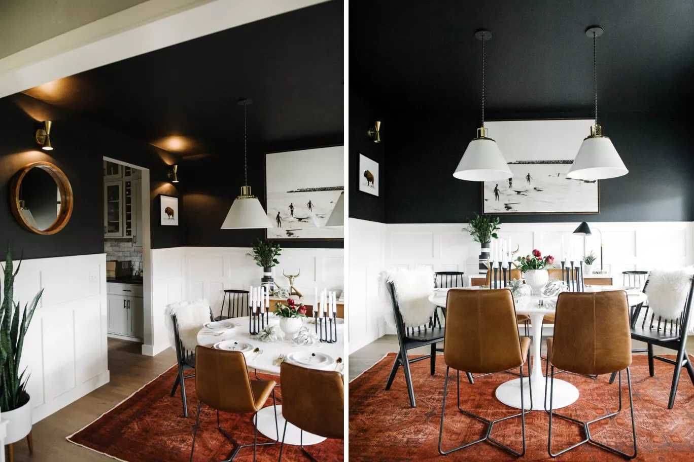 Оцените сами по данному примеру интерьера столовой: помог ли чёрный цвет расширить комнату?