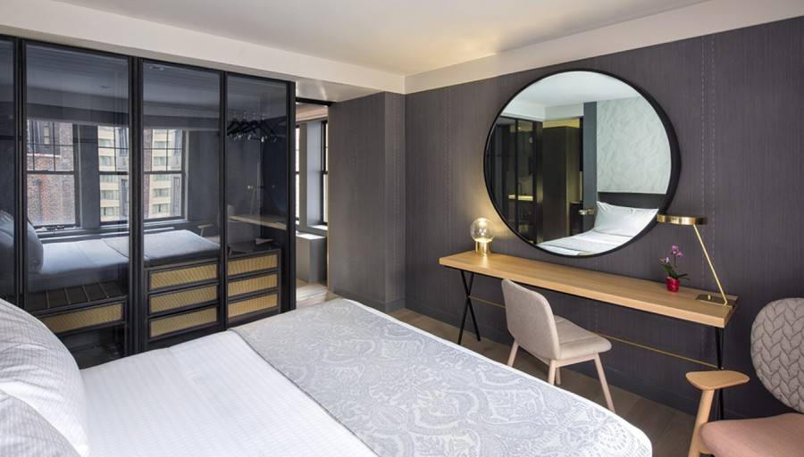 Планировка спальни также предусматривает много места для хранения вещей. Вы сможете разместить два комода в дополнение к тумбочке, письменному столу и даже несколько сидений со скамейкой в конце кровати!