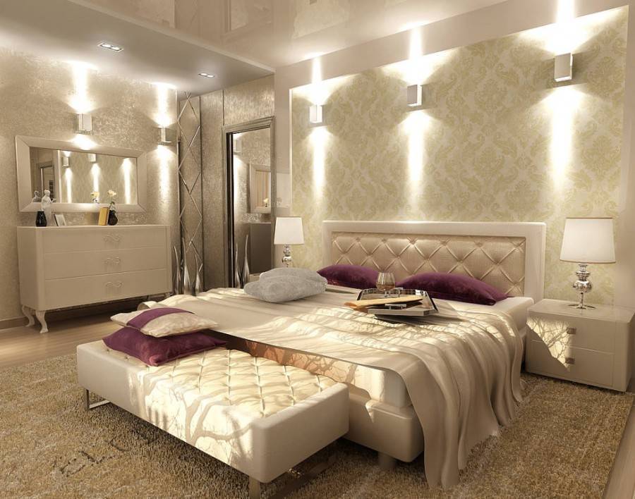 Подбор осветительных приборов. Спальная комната является местом уединения, там, где хочется отдохнуть и расслабиться. Именно поэтому свет в этой комнате должен быть более приглушенным и рассеянным.