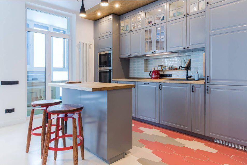 Оформление дизайна кухни с балконом, имеющей квадратуру в 10 кв. м. полностью зависит от ваших предпочтений, и выражаться подобная особенность может в первую очередь в стилистике помещения. В этом примере вы можете продолжить в совмещённой с балконом кухне как уже обустроенный в квартире стиль, так и отдать предпочтение абсолютно контрастному решению. Главное отказаться от утяжеляющих пространство направлений и не загромождать помещение излишней мебелью.