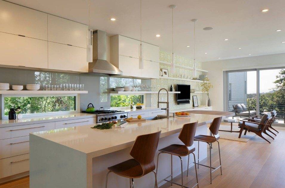 - У вас появляется отличная возможность поэкспериментировать как с расстановкой мебели на кухне, так и с оформлением интерьера.