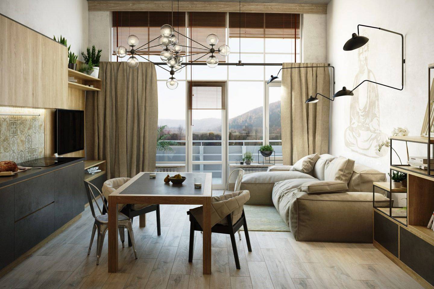 Совмещение балкона с кухней — очень удачное решение