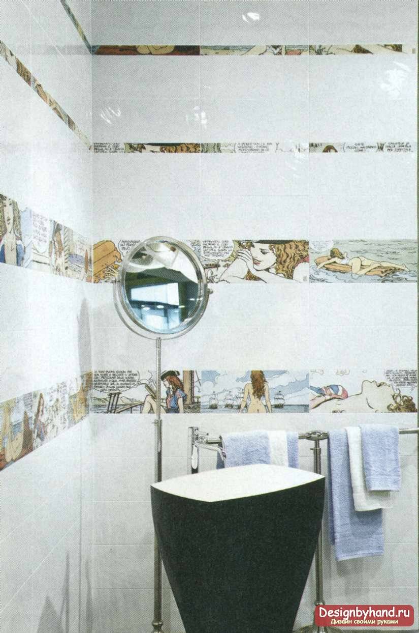 Фьюжн – это прежде всего определенное настроение, которое создается посредством декора. В этом смысле комикс, пусть даже на плитке, вызывает целую волну позитивных эмоций. Тонкий фриз из той же серии – словно полоска бумаги с фрагментом рисунка, который озорной мальчишка разрезал на мелкие части, а теперь составляет пазл заново…