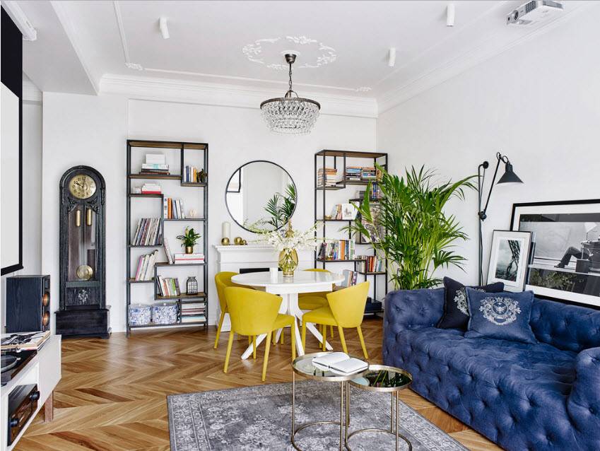 Стиль позволяет правильно оформить каждую зону квартиры, при этом сохраняя просторность.