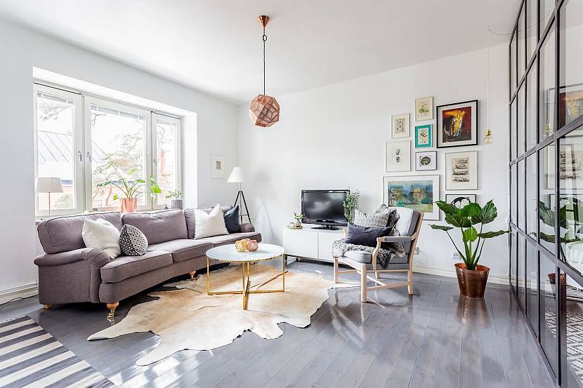 Темные полы преображаются, если положить на них светлые коврики. Дополнительная контрастность не помешает.