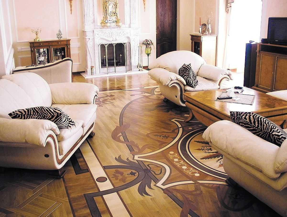 Красив и престижен паркет. Но его далеко не самая низкая цена, особенности эксплуатации (регулярная полировка, периодическая циклевка, покраска и влажностно/температурные расширения) привели к тому, что используют паркет намного реже имитаций. Но пластичность дерева позволяет создавать очень красивый пол, к тому же даже атмосфера в помещениях иная, и ощущения босыми ногами тоже другие. Потому, несмотря на все сложности, и он находит своих почитателей.