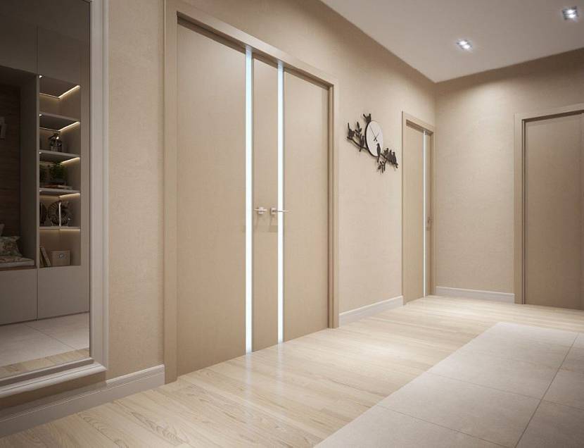 Напольное покрытие не обязательно должно с точностью повторять оттенок дверей. Главное, чтобы они соответствовали общими цветовыми показателями. Так, допускается установка молочных, светло-коричневых, пастельно-серых дверных проёмов. Наибольшей популярностью пользуются такие комбинации: