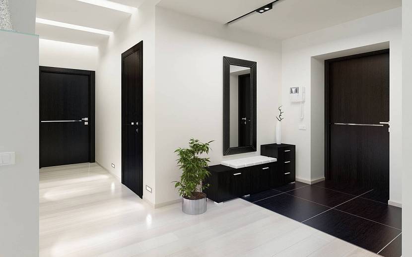 Выбор цвета пола зависит от дизайна: материалов, преобладающих в отделке и декоре, стиля прихожей и квартиры в целом. Многие предпочитают темный пол, ошибочно думая, что на нем меньше видна грязь. На самом же деле нейтральные расцветки не привлекают к загрязнениям внимания, тогда как на темных поверхностях пыль будет бросаться в глаза.