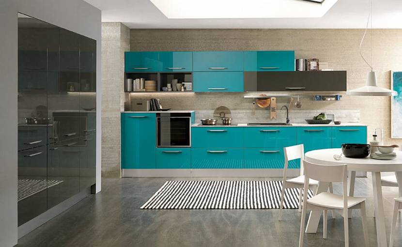 Насыщенный бирюзовый цвет мебели и серый полИсточник my-step.ru