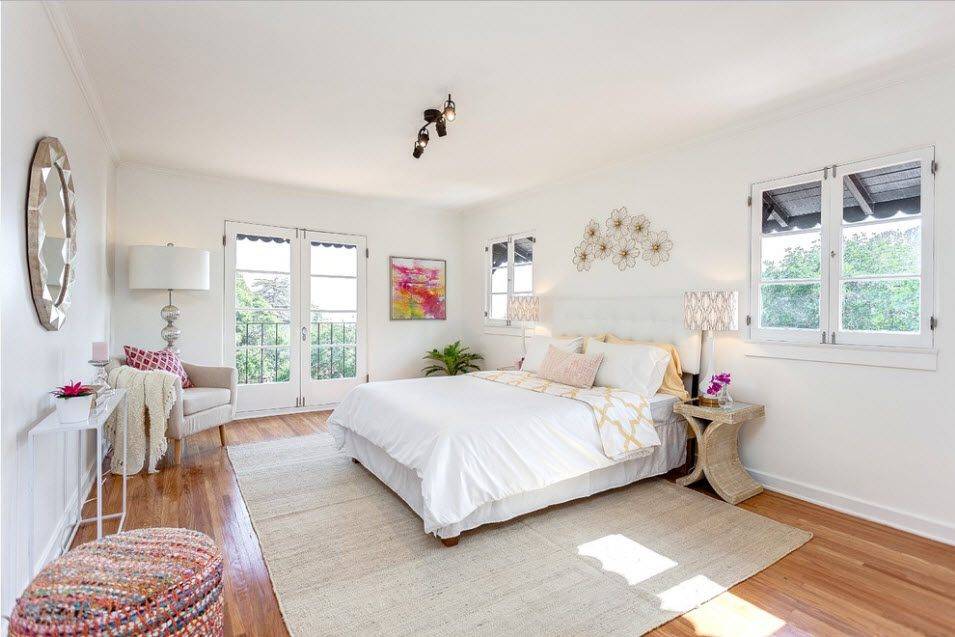 Кровать — хозяйка спальни. Рекомендуется выбирать максимально большую кровать, какую только может вместить помещение. Иностранные дизайнеры советуют клиентам приобретать для спальни наиболее дорогую кровать из тех, на которые хватает средств.