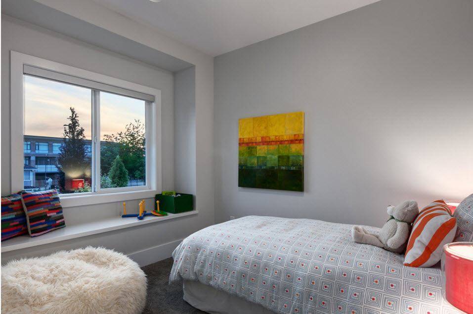Пол не возбраняется замостить темным ковролином или линолеумом. Можно соорудить специальный подиум для оформления спального места. Кстати, при таком решении удобнее организовать под кроватью системы хранения. Это могут быть выдвижные ящики или крупные корзины.