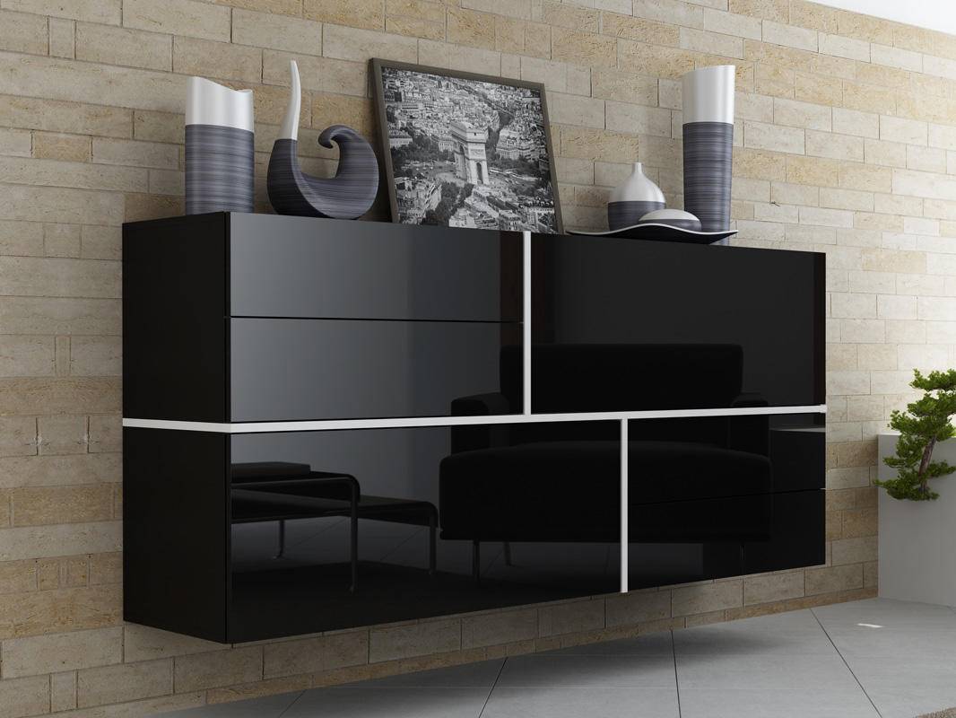 Настенная разновидность данной мебели имеет современный внешний вид. Из названия становится ясно, что ее монтируют на стену. Для этого используются специальные крепежные элементы. Стоит сказать, что красивые комоды в гостиную, относящиеся к настенной группе, отлично подходят для помещений, которые страдают от нехватки свободного пространства. Такая мебель имеет небольшие габариты.