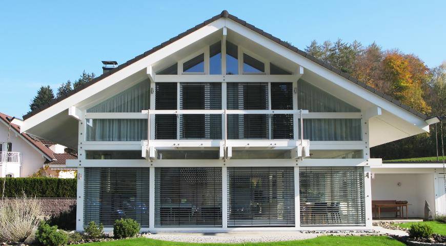В качестве утеплителя хорошо себя показывает каменная вата, но можно выбрать и другой утеплитель с хорошей геометрией. С внутренней стороны поверх утеплителя прокладывается пароизоляция, с наружной – гидроветрозащитная мембрана. Для обшивки используют плитные материалы (ОСП, ЦСП и пр.). В современном исполнении фахверка диагональные раскосы нередко отсутствуют а межкаркасное пространство заполняется большой площадью остекления. Монтируются стеклопакеты не в рамах, а в пазах каркаса. Фахверковый дом возводится быстро и без применения тяжелой техники, не дает усадки и допускает свободный подход к планировке. Следует заметить, что современные вариации фахверка выглядят стильно и соответствуют тенденциям интерьерной моды: технология позволяет создавать решения с просторными безопорными помещениями, имеющими панорамное остекление. Именно поэтому популярность фахверковых домов растет.