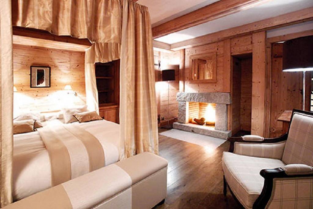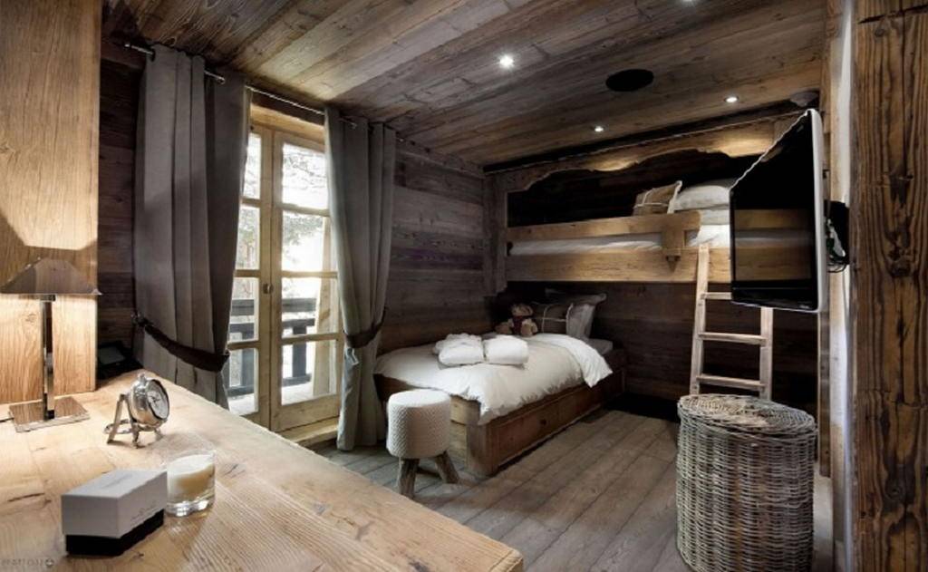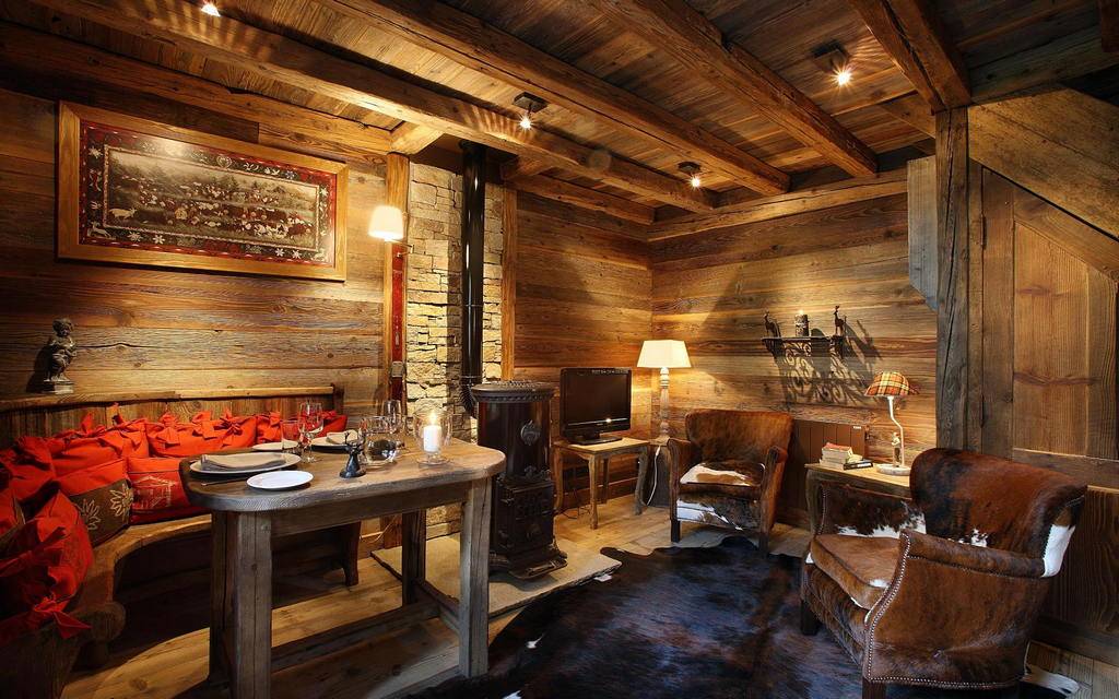 Обладает неповторимыми характерными чертами и интерьер дома в стиле шале. Лучшей иллюстрацией современного стиля можно считать шале-отель люкс класса в алпийском Куршевеле, во Франции. В этой резиденции популярного горнолыжного курорта, возведенной в 2010 году, оборудовано семь комфортабельных спален с отдельными ванными. Кроме этого есть просторная гостиная зона, закрытый бассейн, массажная комната, тренажерный зал и сауна. Интерьеру шале в данном случае характерен традиционный стиль с роскошной отделкой.