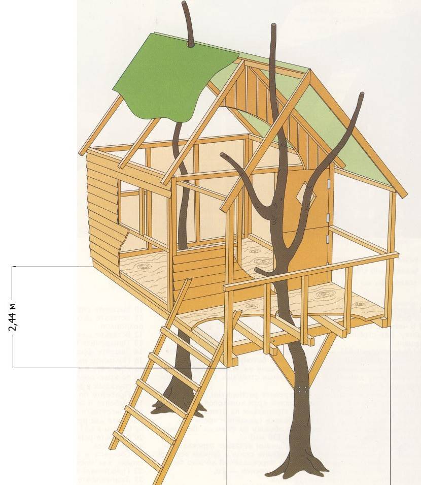 Строят домик на дереве на высоте от 1,5 до 2,5 м.