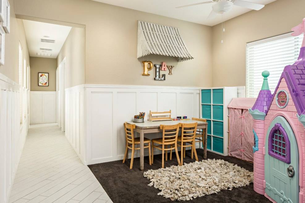В случае, если размеры дома не позволяют выделить отдельную комнату для создания игровой зоны с домиком, рекомендуем преобразовать пространство под лестницей. Зачастую оно не используется рационально, а остается пустым. Поверьте, оно отлично подойдет для создания небольшого, уютного домика для игр. К тому же, если его немного украсить и добавить декоративных деталей, он будет выглядеть здорово!