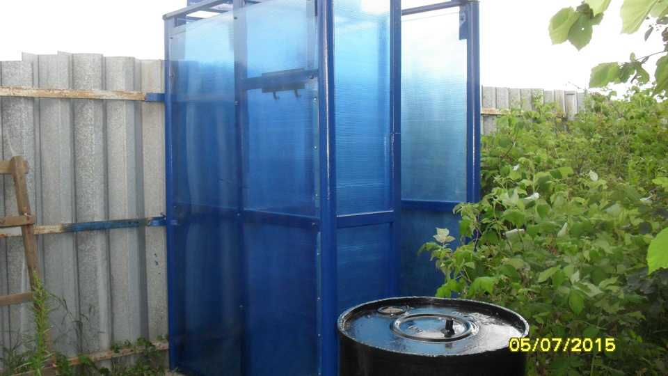 Макс: после стройки остался уголок и металлопрофиль. Просчитал — в аккурат на душевую. Собрал за пару дней. Новичкам совет — лучше берите бак с металла. Пластиковый в первую же зиму треснул. Сам виноват, воду не до конца спустил, но все же.