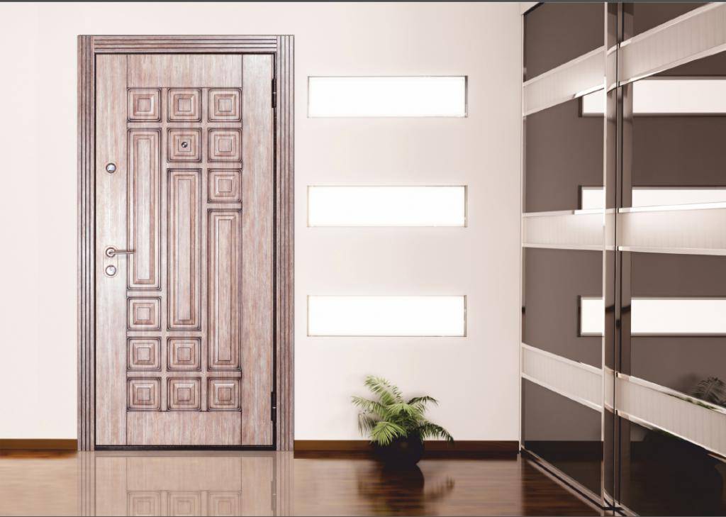 - Внутренняя отделка. Используемые материалы для внутренней отделки у моделей разнятся в зависимости от категории выпуска. У наиболее популярных вариантов это MDF, ПВХ, а у более бронированных с внешней и с внутренней стороны установлены прочные стальные листы, иногда дополнительно укрепленные бронированной накладкой.