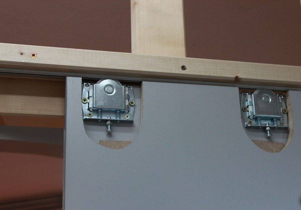 - К верхней части дверного полотна фиксируется ответная планка с роликовыми опорами.