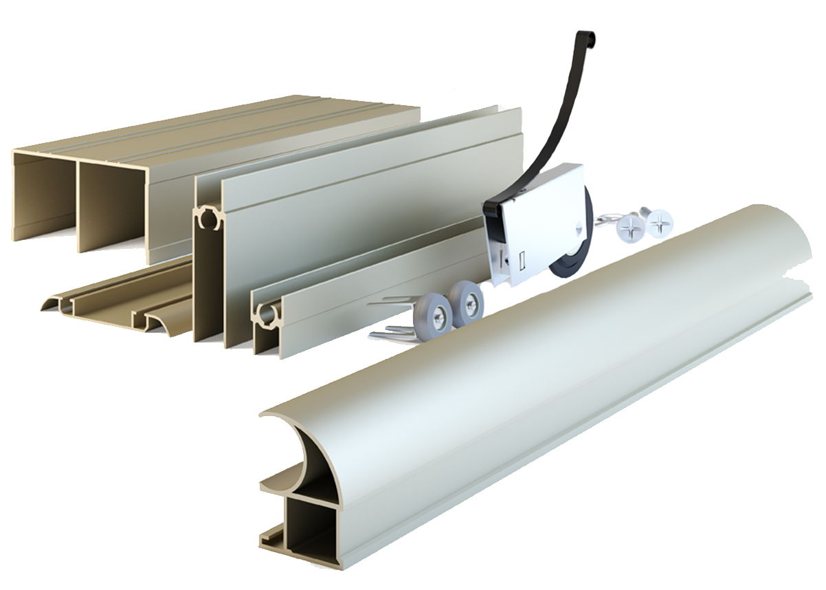 Раздвижная система представляет собой механизм, который состоит из направляющих, рельс и роликов. Он может изготавливаться из различных материалов: