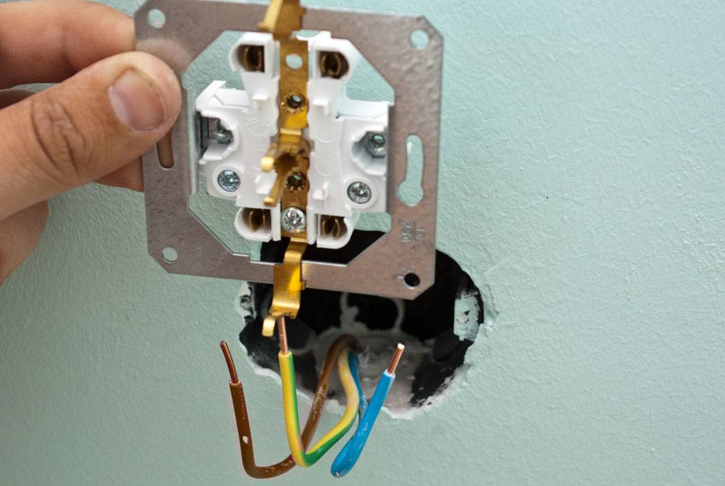 Далее, все что остается это подключить жилы к самой розетке и установить ее во внутрь. Здесь можно столкнуться со следующим моментом, который также вызывает у электриков споры и противоречия.