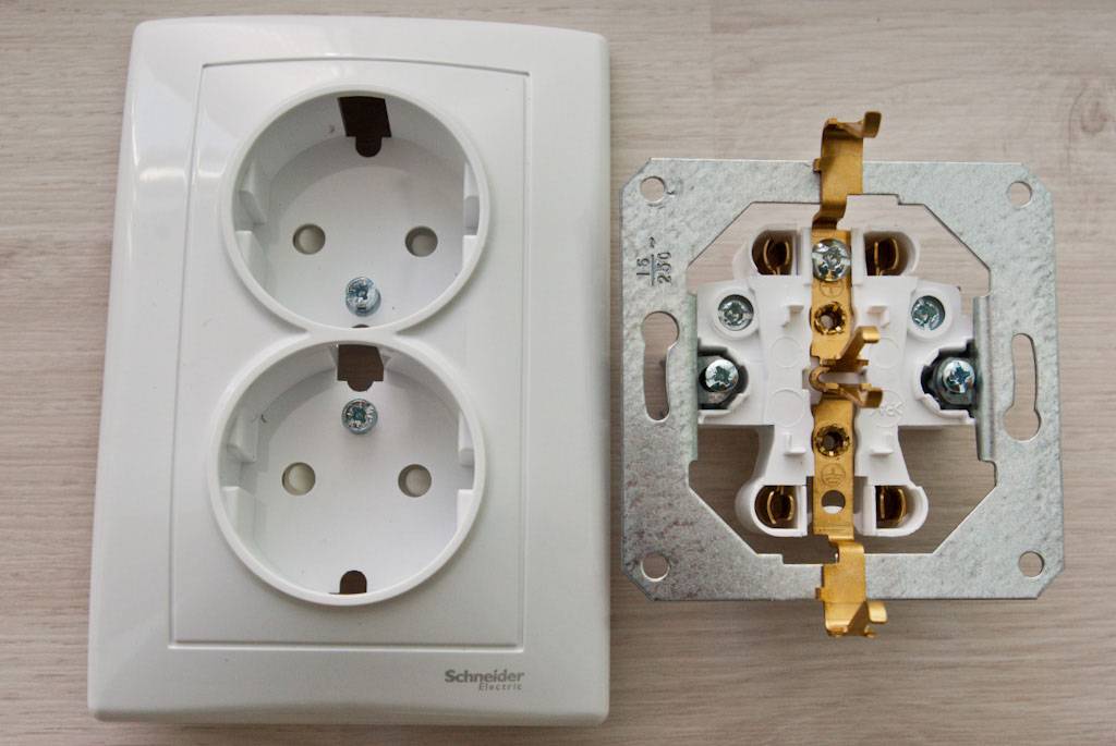 Подключение двойной розетки рассмотрим на примере механизмов Schneider Electric модели Sedna.