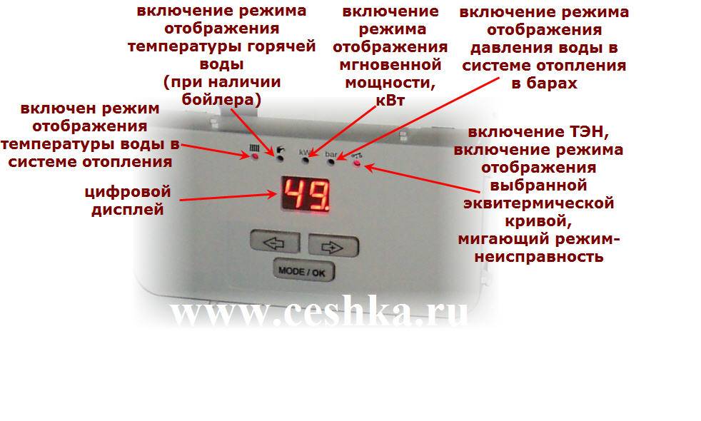 Итак, на передней, лицевой части котла находится цифровое табло с кнопками управления и индикацией:
