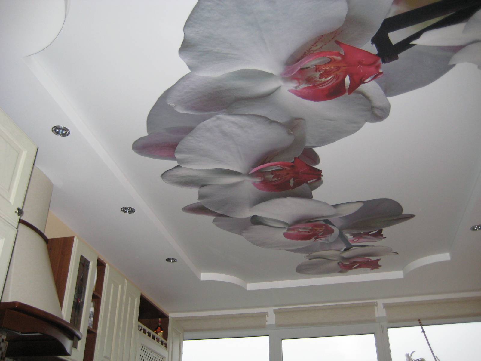 Фотопечать на натяжных потолках выглядит так: