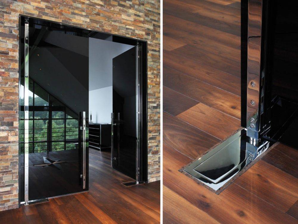 Маятниковые. Особенностью таких дверей является особый механизм поворота. За счет этого створки открываются в обе стороны (как внутрь, так и наружу). Маятниковые двери еще имеют название «качающиеся», очень удобны в эксплуатации.