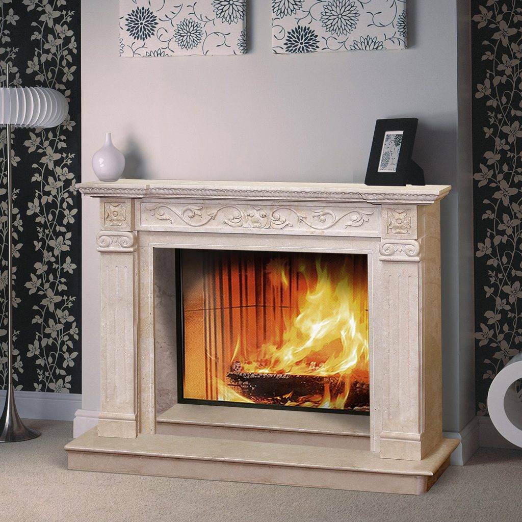 Белые камины или порталы, в которые устанавливается очаг, могут быть различных оттенков белого цвета — вы можете выбрать цвет «слоновая кость» или «белый дуб», также популярны каминные ансамбли с элементами патины, которые добавляют камину налет старины и эксклюзивности.