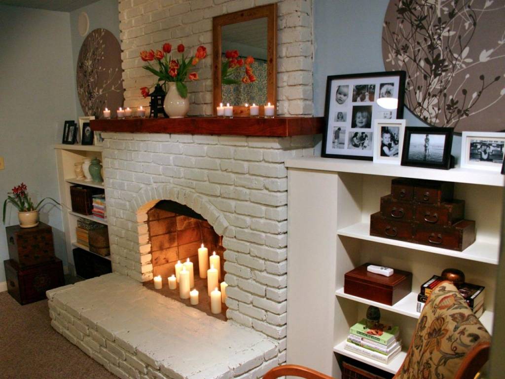 СОВЕТ: Вместо кирпичной кладки внутри камина, установите зеркало. Такой прием поможет визуально увеличить пространство, а если возле зеркала поставить свечу или торшер, то и света в комнате станет вдвое больше.