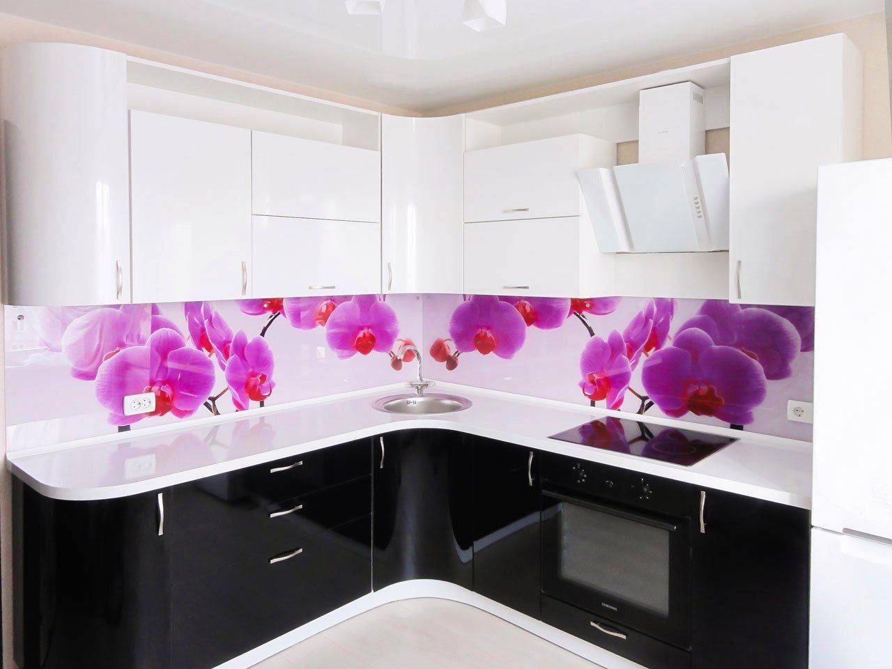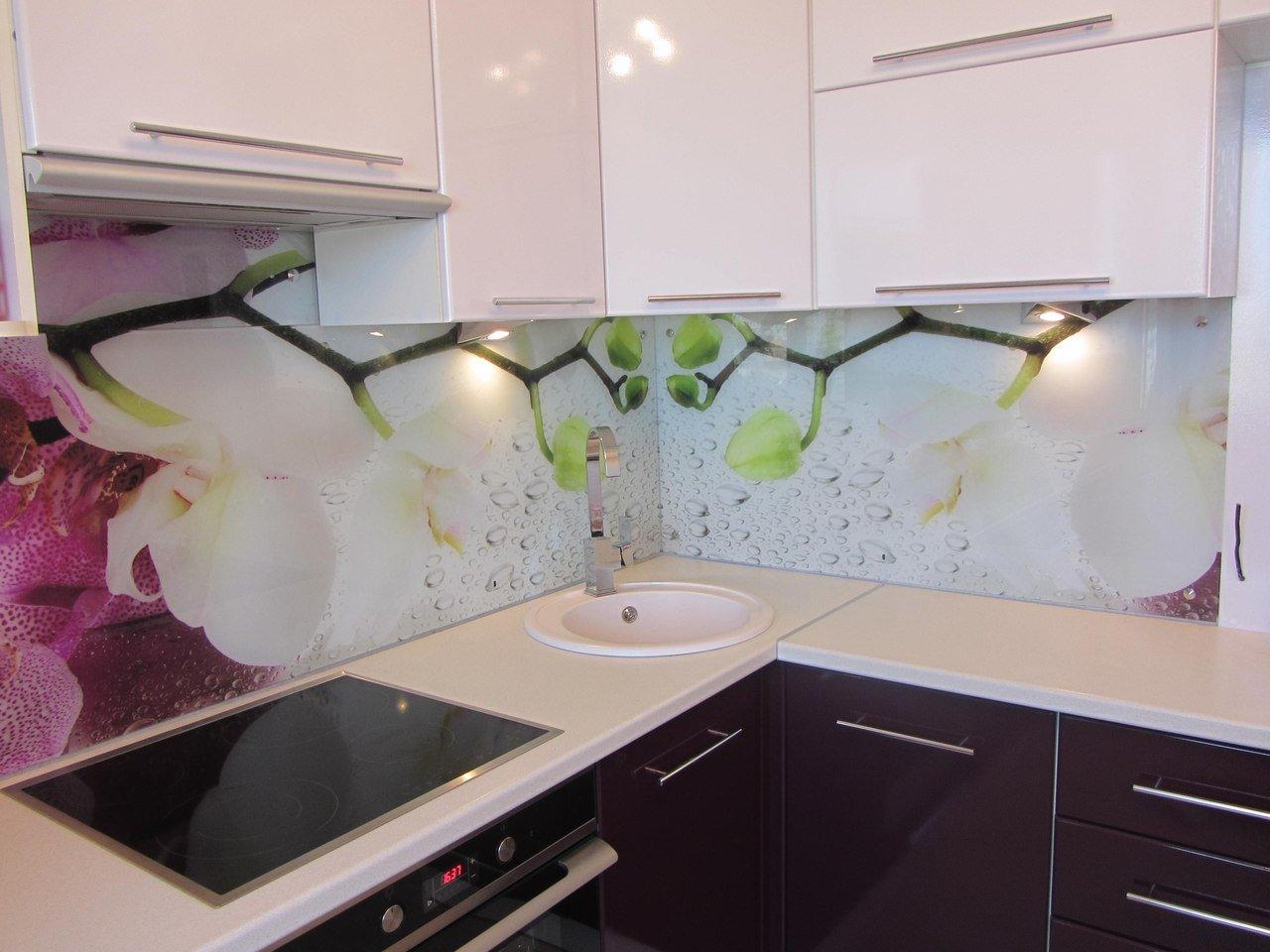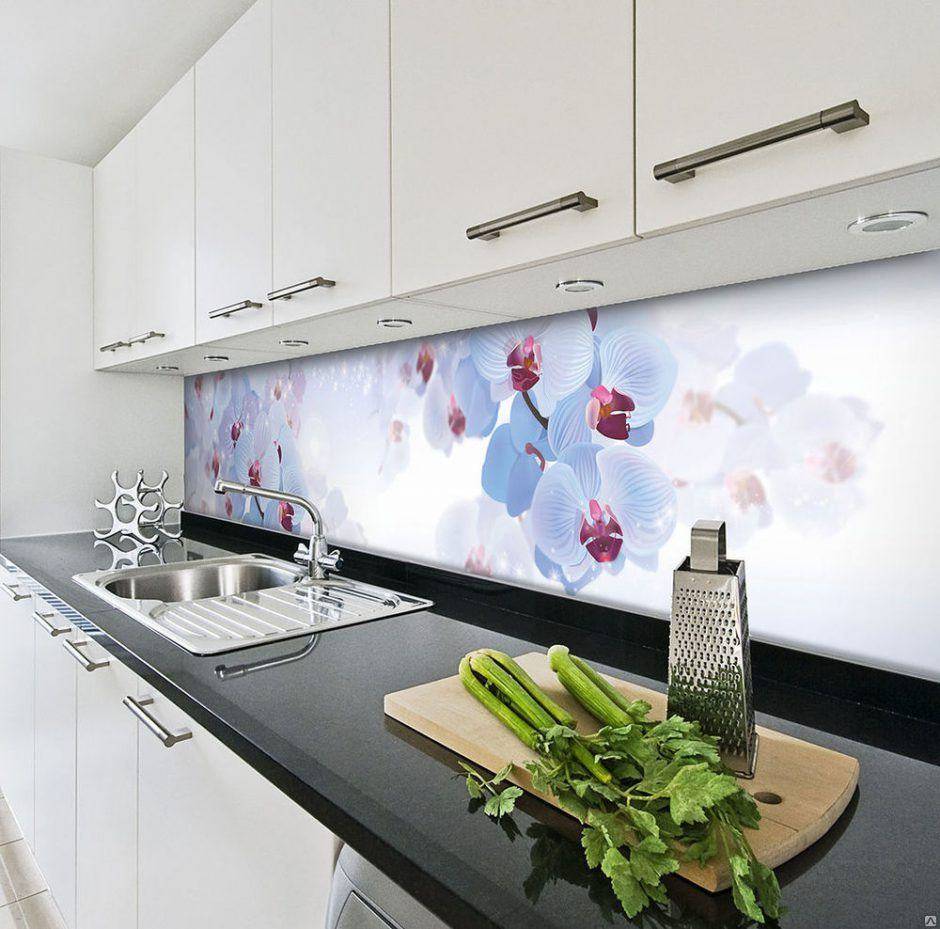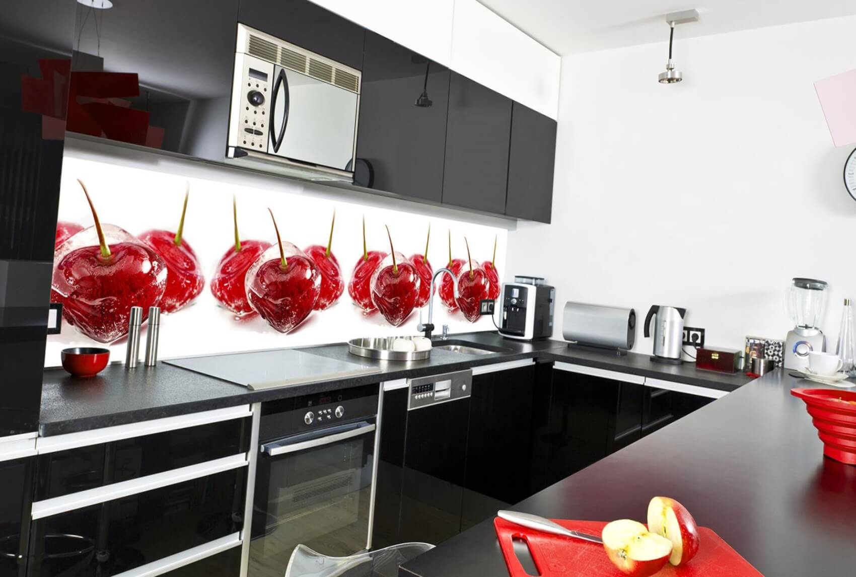 Чаще всего оттенки делают повторяющими фасады — например, на белой кухне — белые орхидеи, на черно-красной — вишни на темном фоне.