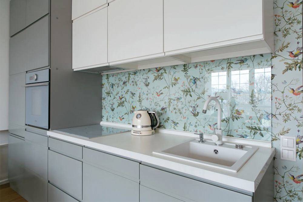 - Высокая устойчивость к влаге. Это позволяет использовать материал даже над раковиной и плитой, где часто образовывается конденсат.