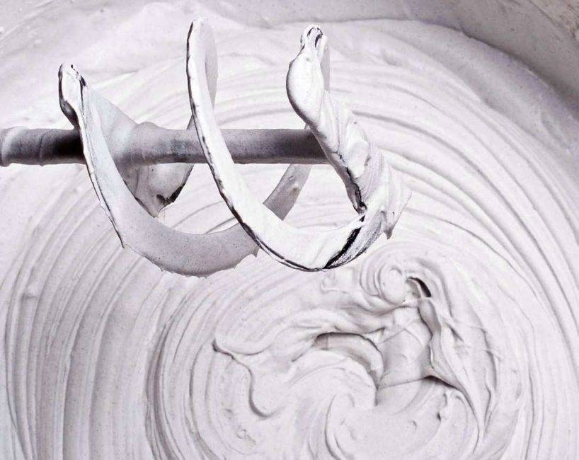 Смесь необходимо размешивать низко оборотной мешалкой или дрелью с регулятором оборотов. После первого размешивания необходимо оставить его на 5 минут для стабилизации и размешать снова. Размешивайте смесь такими порциями, чтобы можно было её полностью использовать.