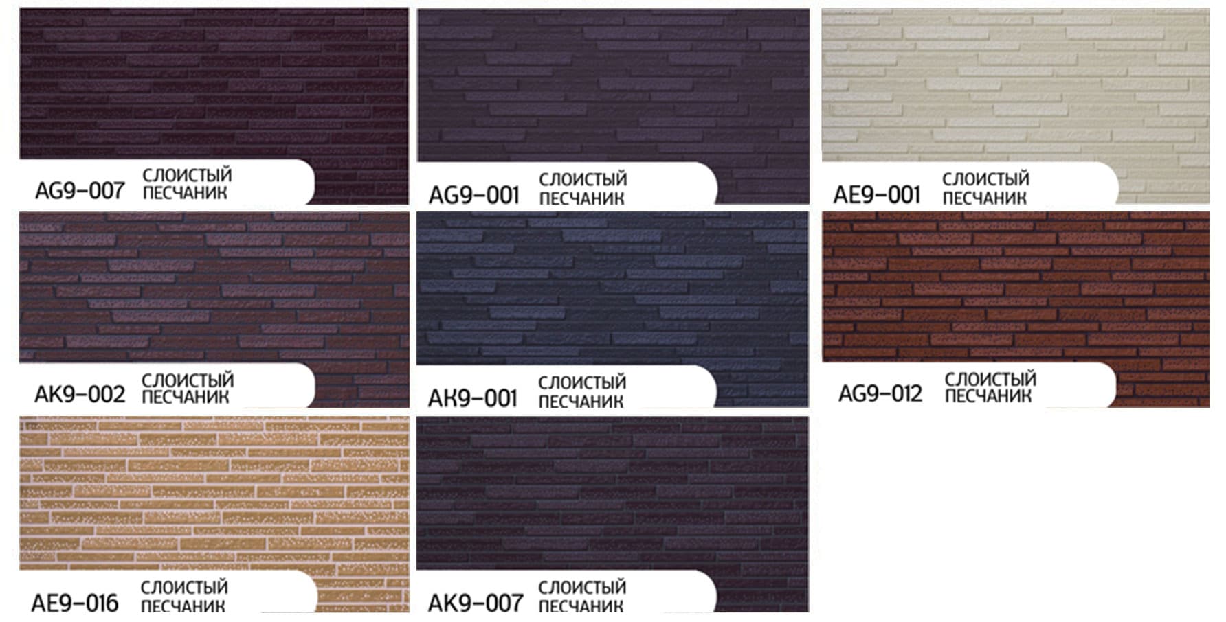Панели слоистый песчаник: AG9-007, AG9-001, AE9-001, AK9-002, AK9-001, AG9-012, AE9-016, AK9-007