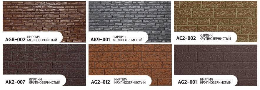 Кирпич крупнозернистый: AK2-001,AK2-008,AE2-004,AE2-001. Мозайка: AG5-001,AG5-005,AG5-008,AG5-008A,AE5-002