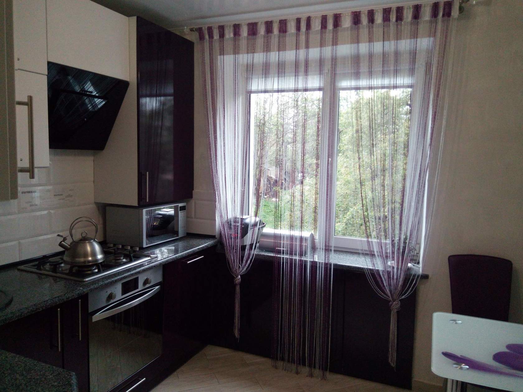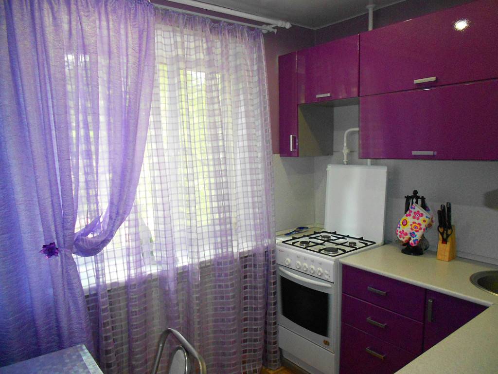 Обустройство интерьера маленькой кухни в фиолетовых тонах